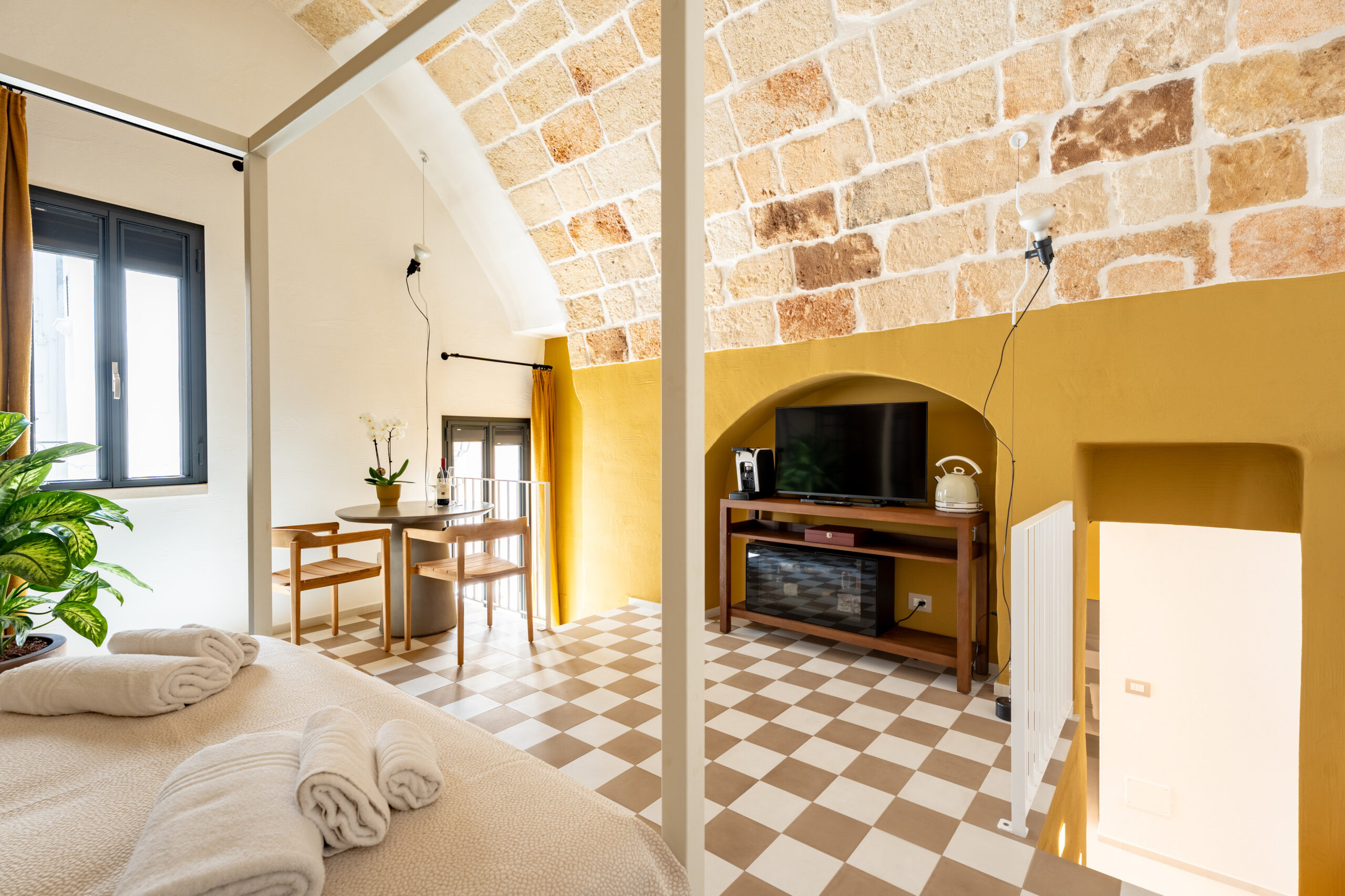 Uno spazio di 19 mq ben organizzati con ingresso indipendente, letto matrimoniale, bagno privato dotato di ogni comfort e un balcone con affaccio sul centro storico. Dotato di Smart TV, macchina del caffè, tavolino con sedie e aria condizionata, unisce comfort e praticità in un’atmosfera intima e accogliente.